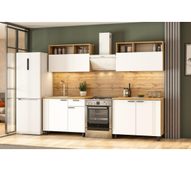 Кухонный гарнитур 5 "Монако" (ширина 360 см) (белый/охра матовый/дуб европейский матовый)